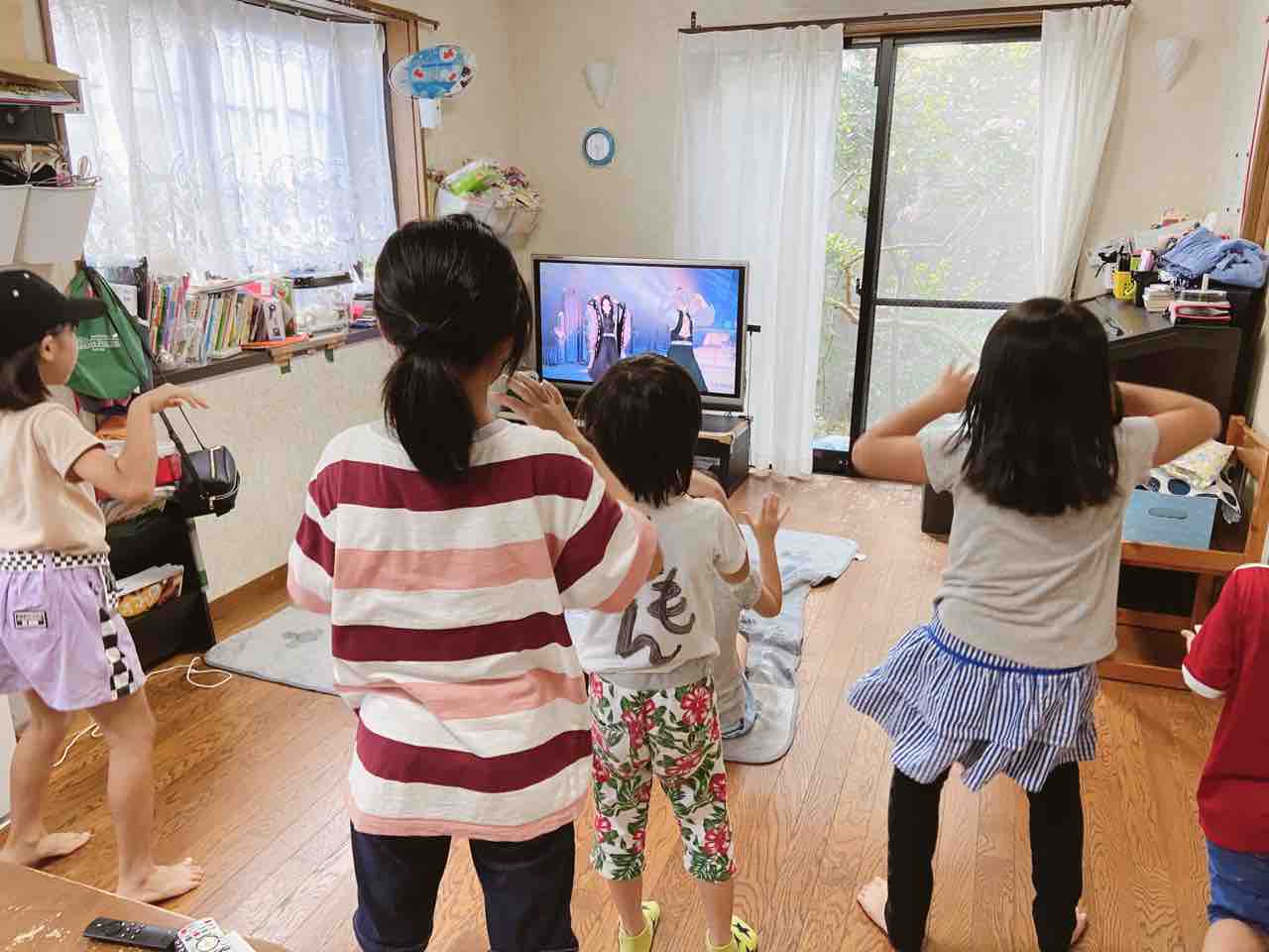 それを見て、振り付けを覚えようと頑張っています!