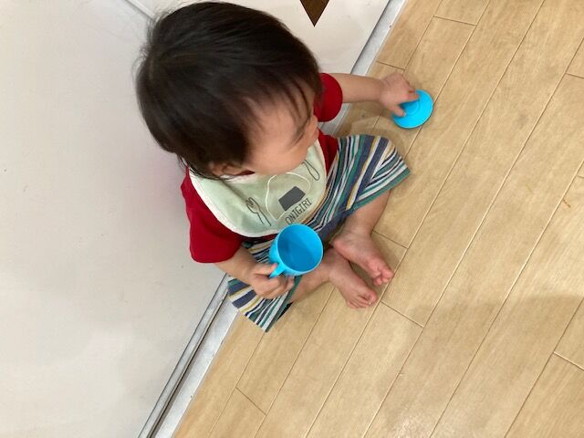 何度も何度もコップに蓋をして外して一人遊びを楽しんだり~~
