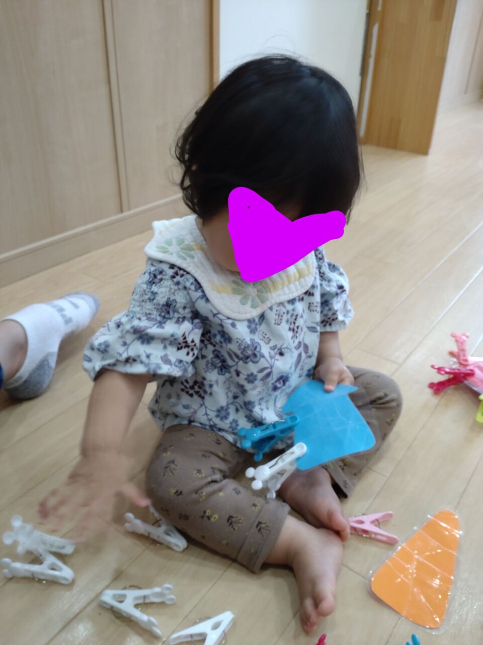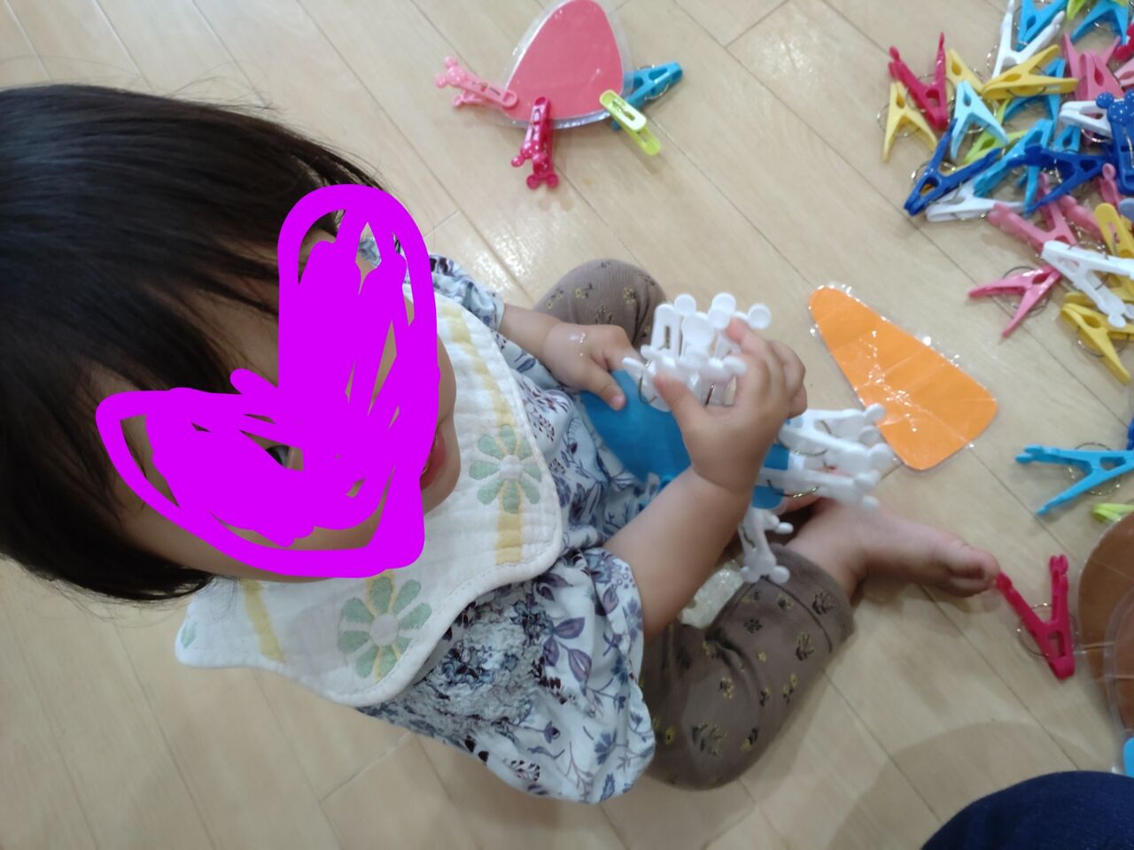 洗濯バサミをプレートにたくさん挟んで渡すと…