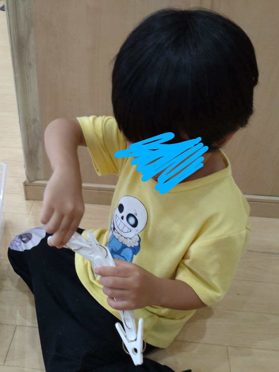 洗濯バサミの開き方を伝えると