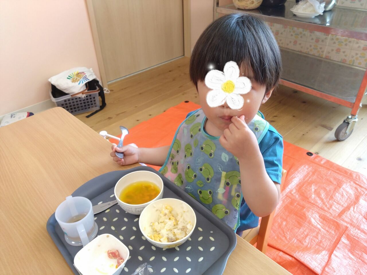 (お友達のお洋服にフワフワのおにぎり🍙が!)