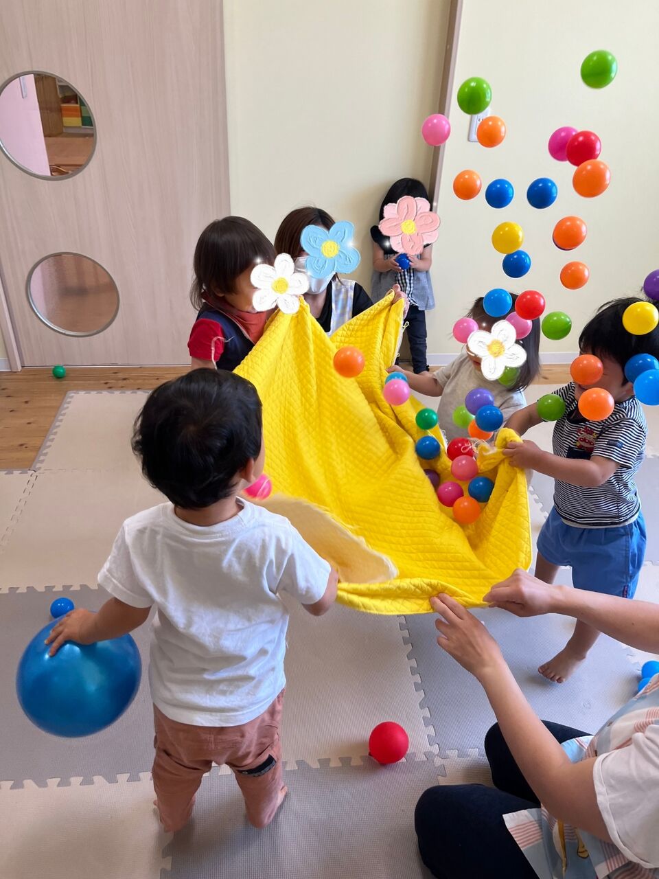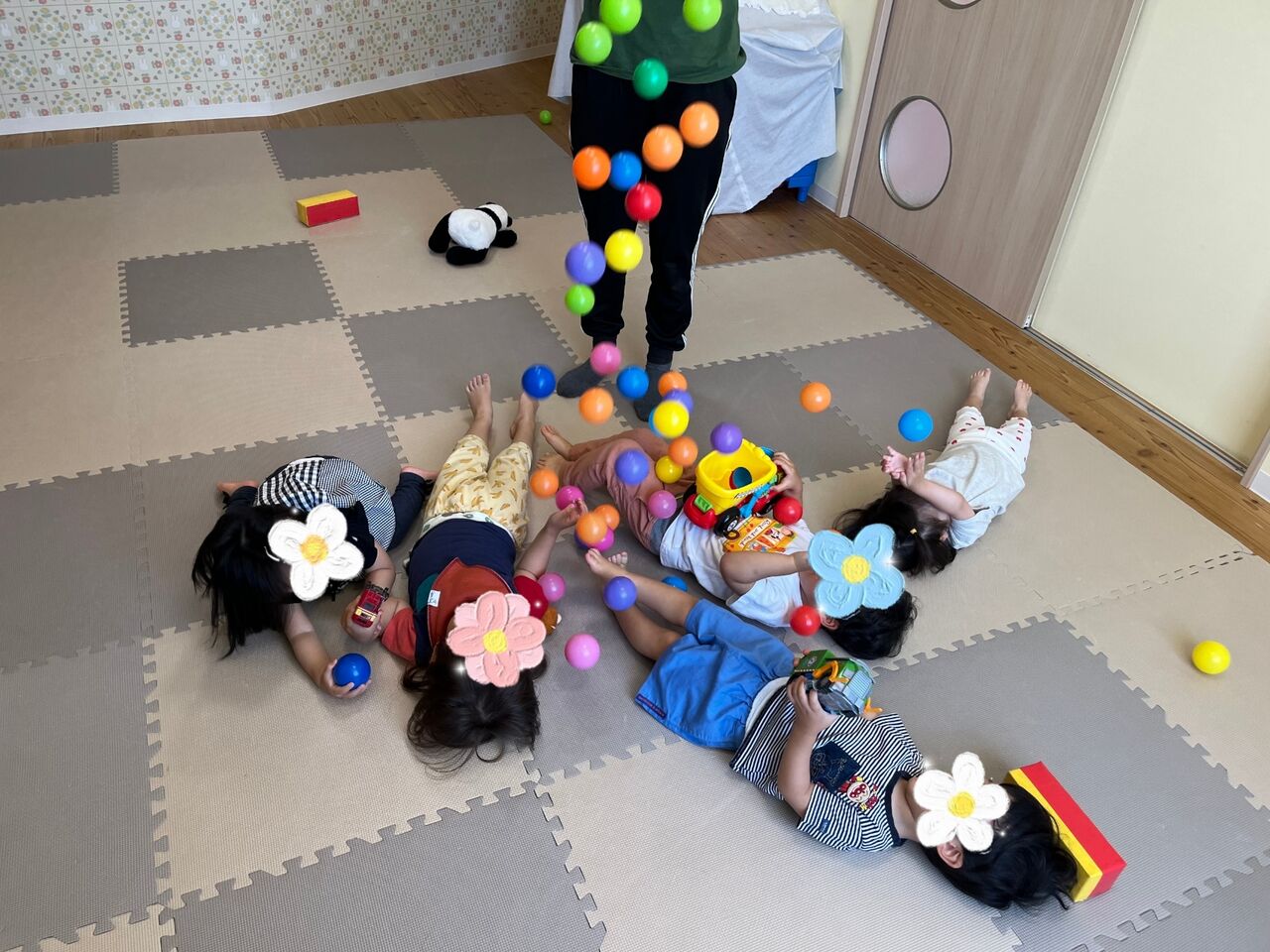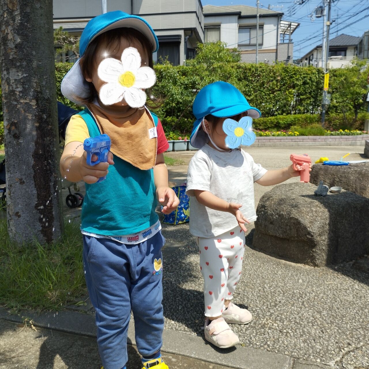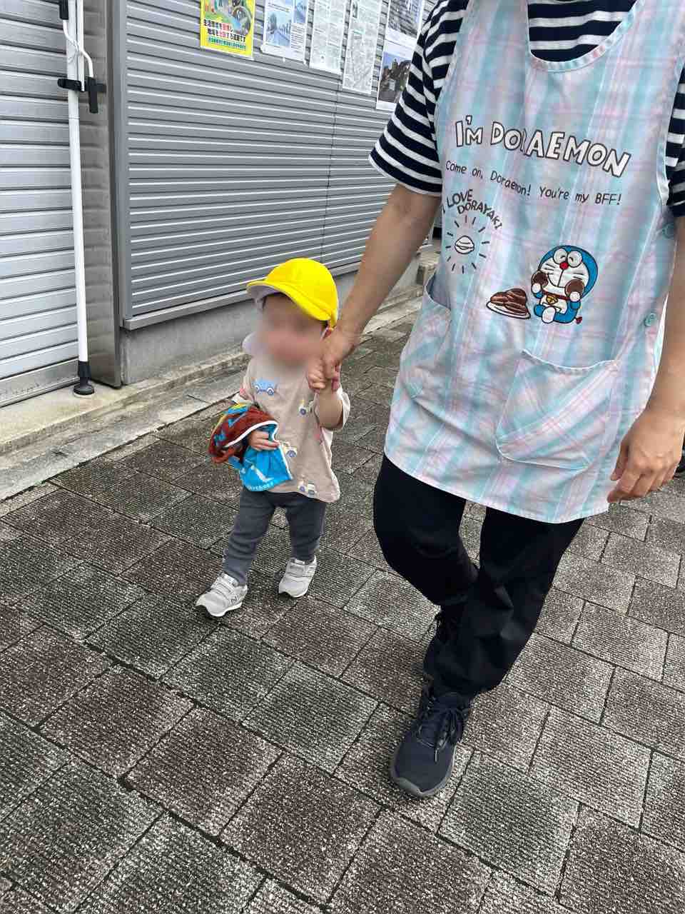 いつもは散歩車のお友達も手を繋いで