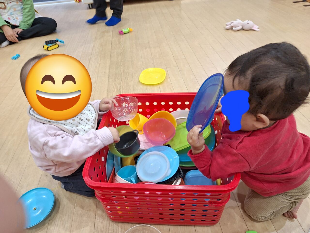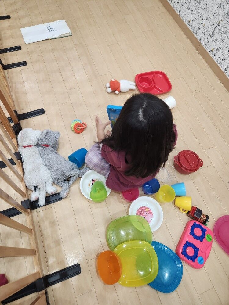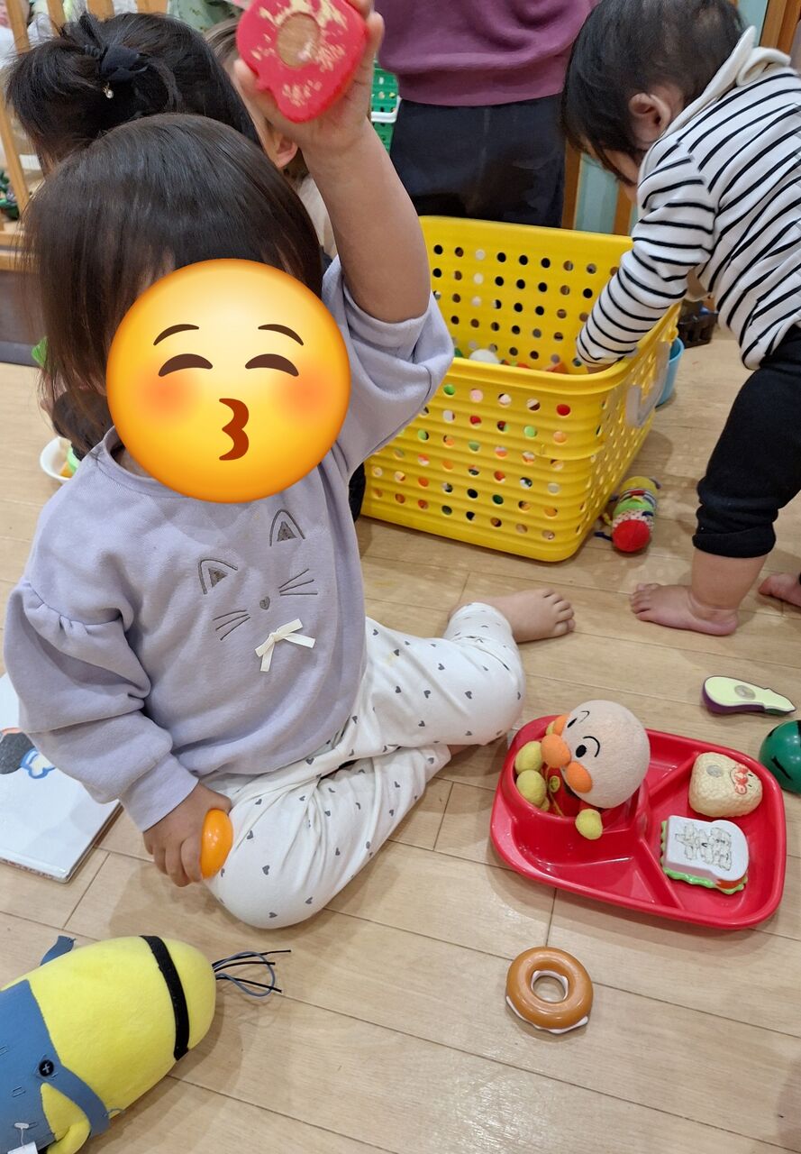 わくわく園のお友達も一生懸命に手を伸ばして、おままごとで遊んでいますね♪