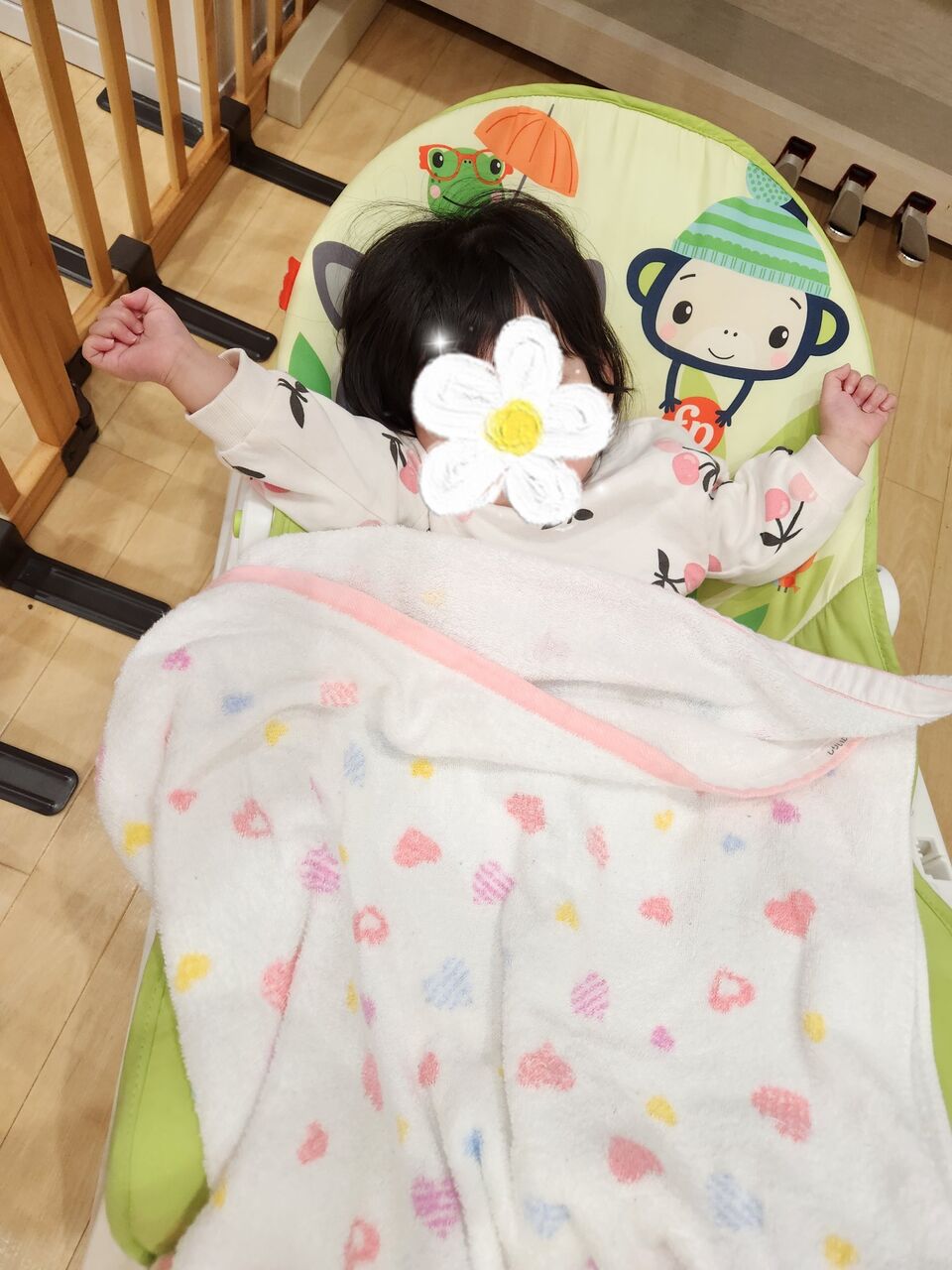 たくさん遊んだ後のバンザーイ寝がかわいいです