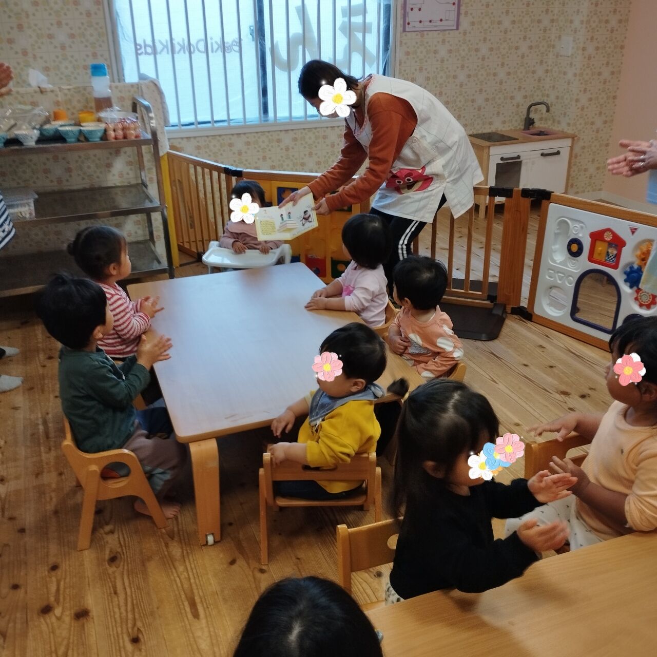 体をゆらゆらしながら、一緒に絵本を楽しんでいました