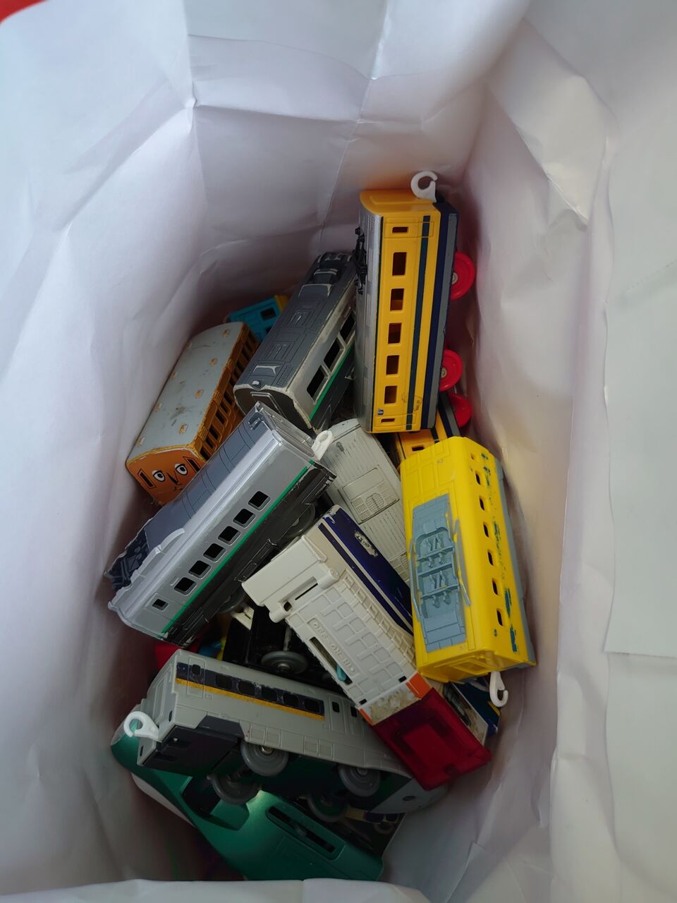 今日は、日中時間があったので溜まりにたまった、修理リクエストのプラレールたちを直す作業をしていました。お返事を出したいなと思って、みんなで写真を撮りましたよ